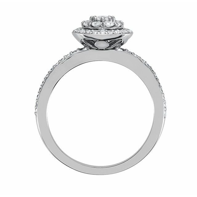 14 Karat White Gold and 0.50 CTW Diamond Halo-Style Cluster Engagement Ring Comes Set With