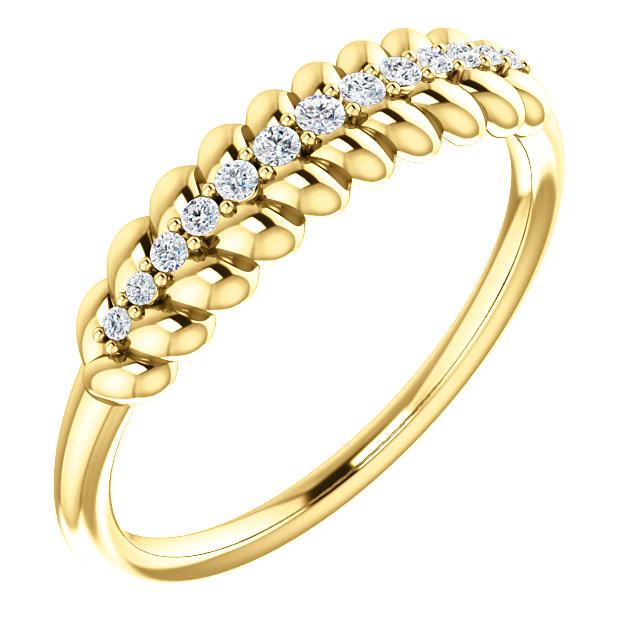 14 Karat Yellow Gold 0.10 Carat Total Weight Diamond Rope Ring is set with selected fine genuine diamond and set with the highest craftsmanship standards in 14kt Yellow Gold