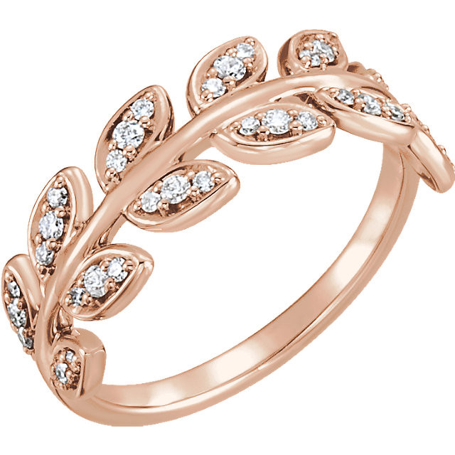 14 Karat Rose Gold 0.25 Carat Total Weight Diamond Leaf Ring is set with selected fine genuine diamond and set with the highest craftsmanship standards in 14kt Rose Gold