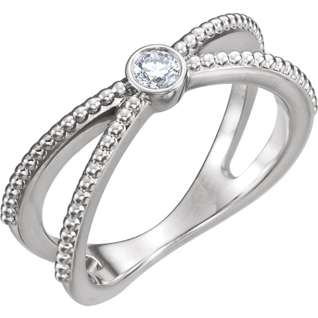 14 Karat White Gold 0.12 Carat Diamond Bezel Set Beaded Ring