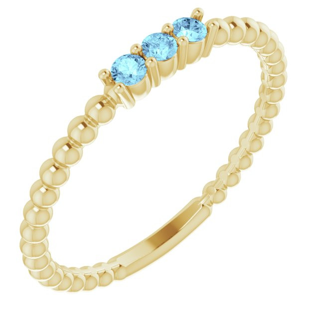 14 Karat Yellow Gold Aquamarine Beaded Ring