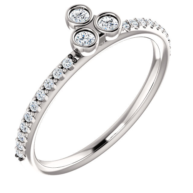 14 Karat White Gold.2 Total Carat Weight Diamond Three-Stone Asymmetrical Stackable Ring