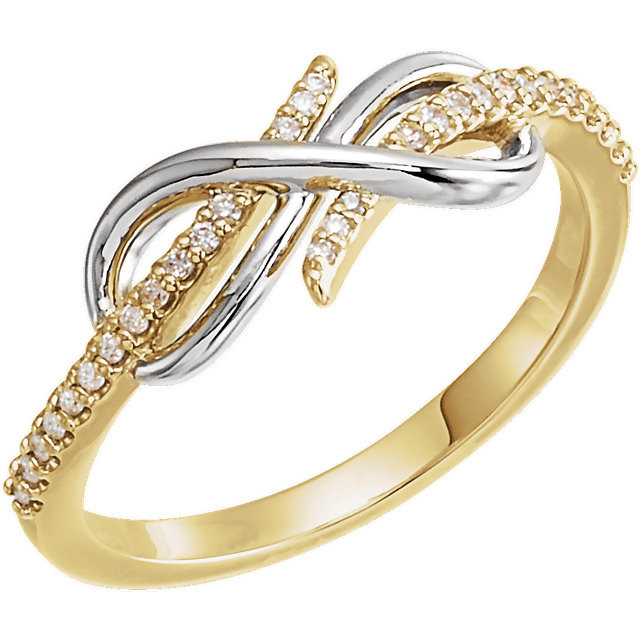 14 Karat Yellow Gold & White 0.12 Carat Total Weight Diamond Infinity Inspired Ring is set with selected fine genuine diamond and set with the highest craftsmanship standards in 14kt Yellow Gold