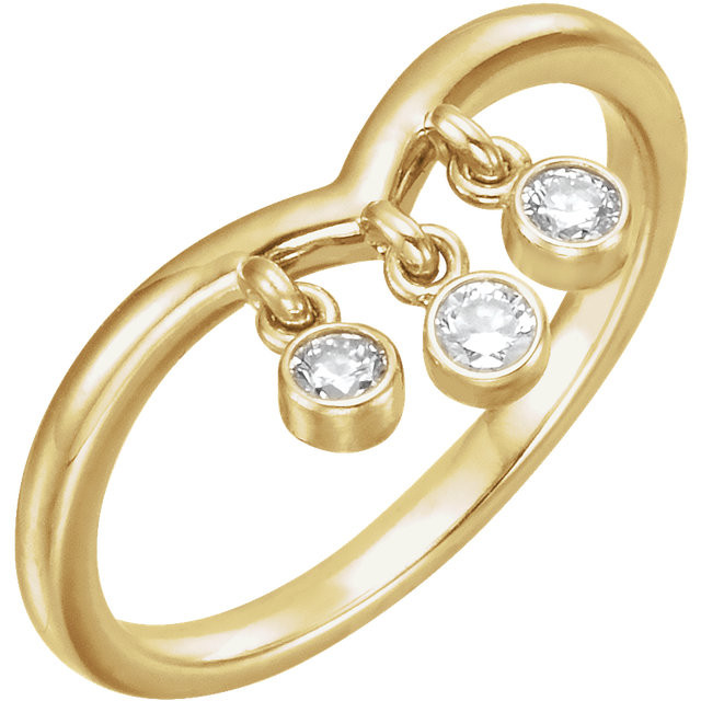 14 Karat Yellow Gold 0.20 Carat Diamond 3 Stone Fringe V Ring