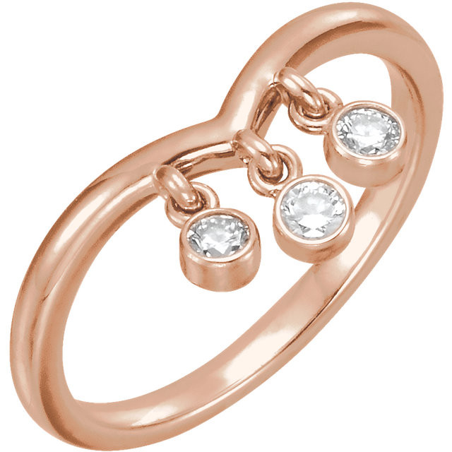 14 Karat Rose Gold 0.20 Carat Diamond 3 Stone Fringe V Ring