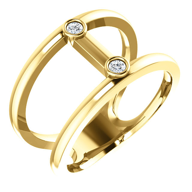 14 Karat Yellow Gold .06 Carat Diamond 2 Stone Negative Space Ring