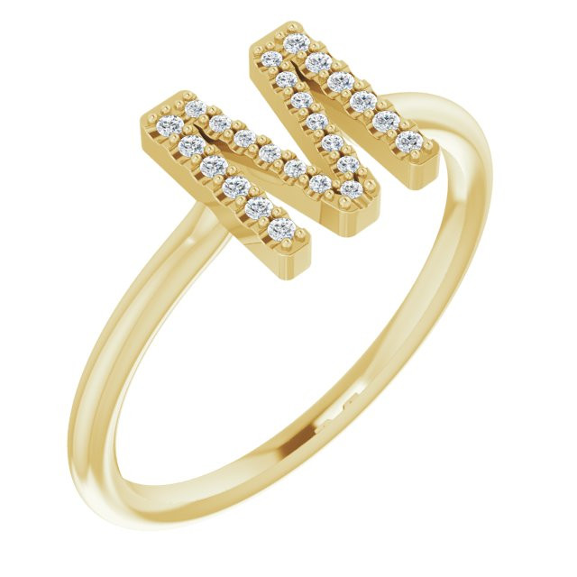 14 Karat Yellow Gold 0.10 Carat Diamond Initial M Ring - Splendid Round Diamond Ring is a timeless jewelry item made in the highest standards for Diamond Fashion jewelry