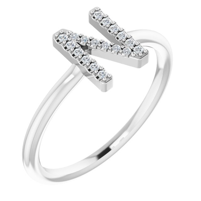 14 Karat White Gold .08 Carat Diamond Initial N Ring - Fashionable Round Diamond Ring is a timeless jewelry item made in the highest standards for Diamond Fashion jewelry