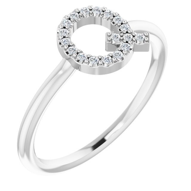 Genuine Diamond set in 14 Karat White Gold .07 Carat Diamond Initial Q Ring