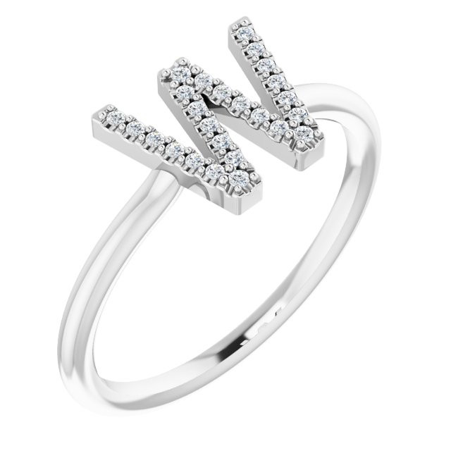 Platinum .06 Carat Diamond Initial W Ring - Splendid Round Diamond Ring is a timeless jewelry item made in the highest standards for Diamond Fashion jewelry
