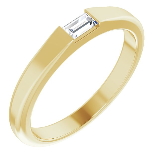 14 Karat Yellow Gold 0.10 Carat Diamond Stackable Ring Size 5 - Elegant Straight Baguette Diamond Ring is a timeless jewelry item made in the highest standards for Diamond Fashion jewelry