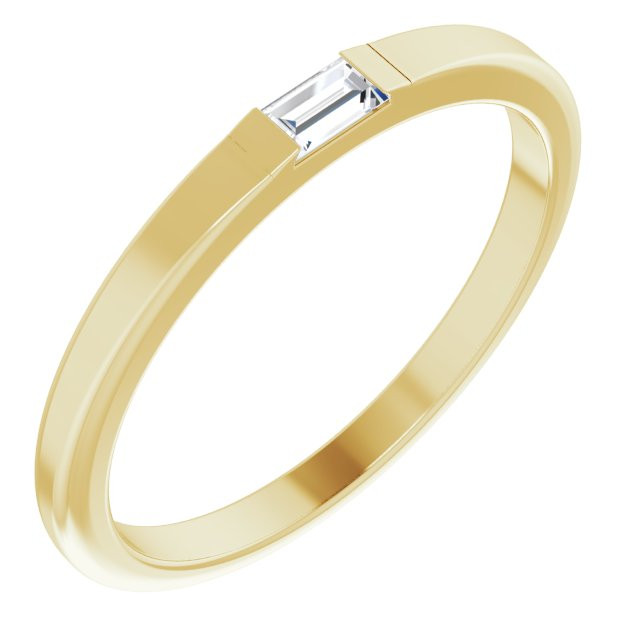 14 Karat Yellow Gold 0.10 Carat Diamond Stackable Ring Size 7 - Ravishing Straight Baguette Diamond Ring is a timeless jewelry item made in the highest standards for Diamond Fashion jewelry