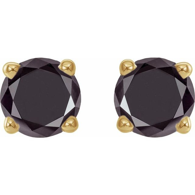 14 Karat Yellow Gold 0.50 Carat Natural Black Diamond Stud Earring with Friction Post