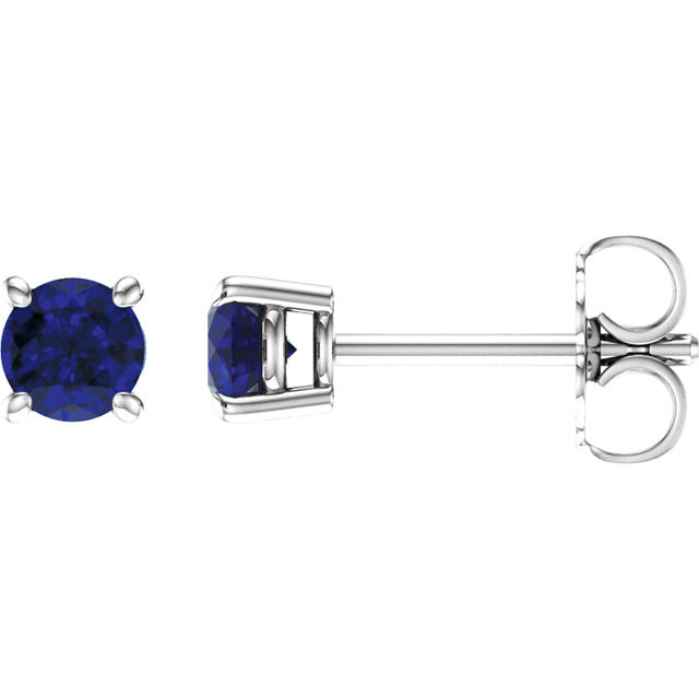 This beautiful 14 Karat White Gold 4mm Round Blue Sapphire Earrings is set with selected fine genuine sapphire and set with the highest craftsmanship standards in 14kt White gold