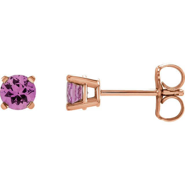 This beautiful 14 Karat Rose Gold 4mm Round Pink Sapphire Earrings is set with selected fine genuine sapphire and set with the highest craftsmanship standards in 14kt Rose gold