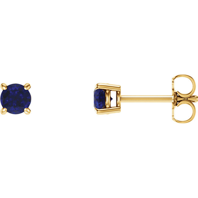 14 Karat Yellow Gold 5mm Round Lab Created Blue Sapphire Earrings
