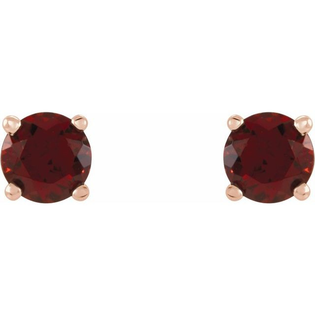 14 Karat Rose Gold 4 mm Natural Mozambique Garnet Stud Earrings with Friction Post Comes Set With