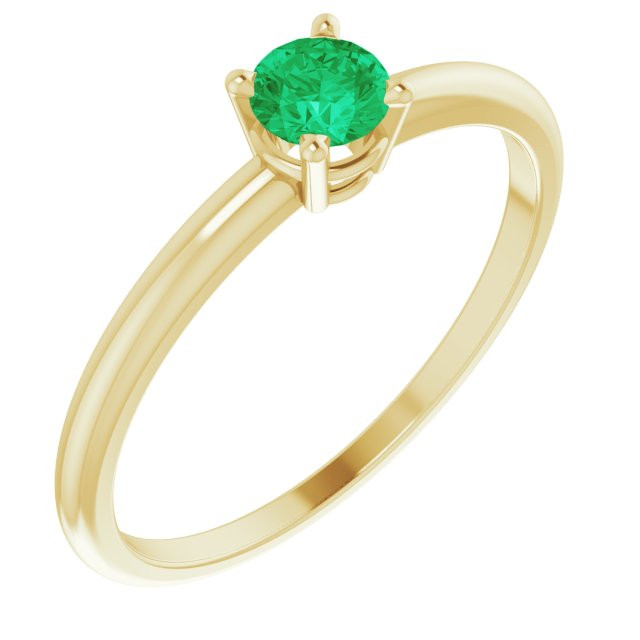 Yellow Gold Ring 14 Karat 4 mm Natural Emerald Gemstone Ring