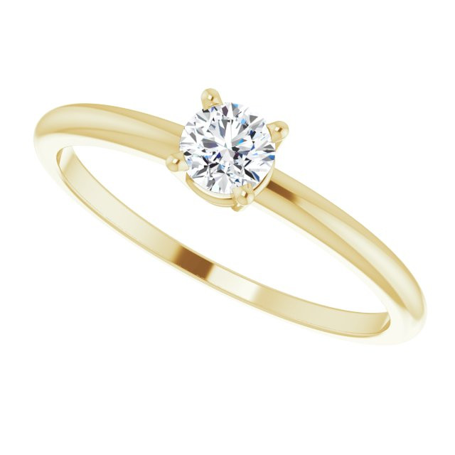 Yellow Gold Ring 14 Karat 4 mm Round Cut Natural White Sapphire Ring