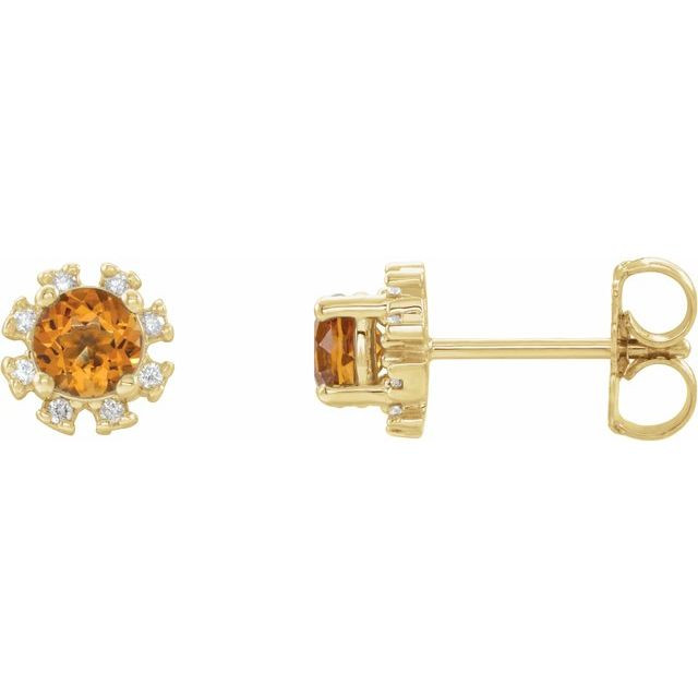 This beautiful 14 Karat Yellow Gold Citrine & .07 Carat Diamond Earrings - Chic Round Citrine Earrings is a timeless jewelry item made in the highest standards for Gemstone Fashion jewelry