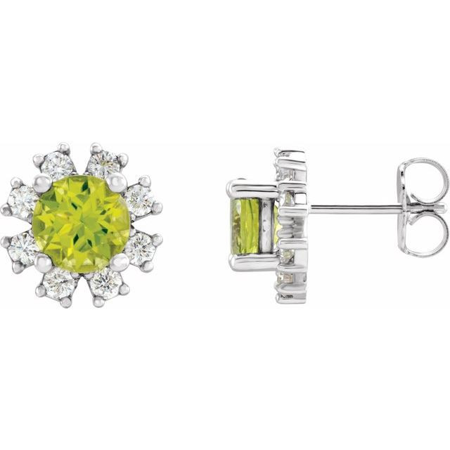 Sterling Silver Peridot and 0.20 Carat Diamond Earrings