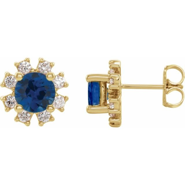 14 Karat Yellow Gold Genuine Blue Sapphire and 0.50 Carat Diamond Earrings