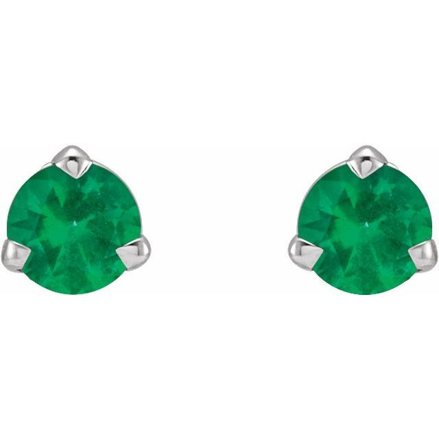 14 Karat White Gold 3 mm Natural Emerald Earrings