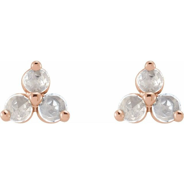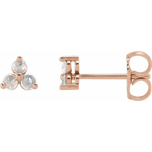 14 Karat Rose Gold 0.12 Carat Rose-Cut Natural Diamond Three-Stone Earrings Comes Set With