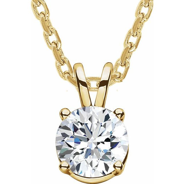This beautiful 14 Karat Yellow Gold 5/8 Carat Lab-Grown Diamond Solitaire 16 inch Necklace - Splendid Round Lab-Grown Diamond Necklace is a timeless jewelry item made in the highest standards for Diamond Fashion jewelry