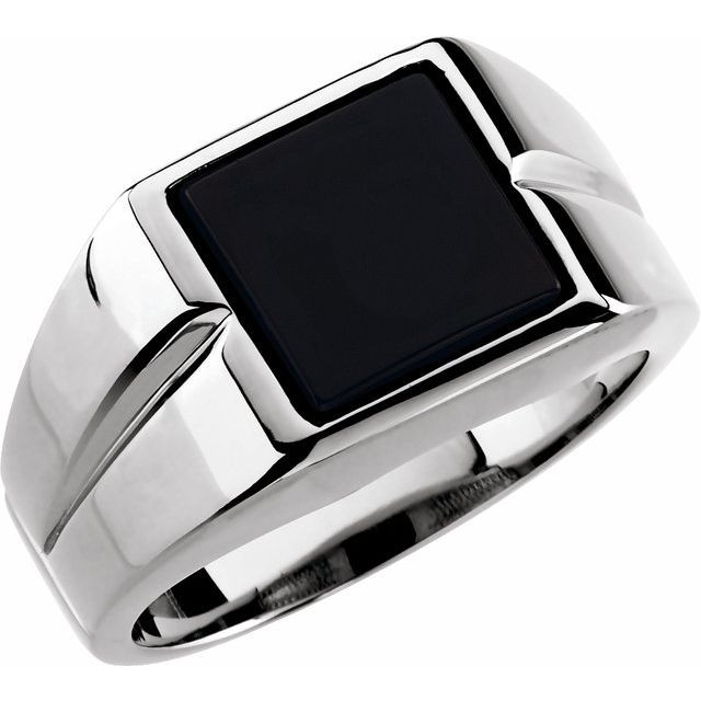 White Gold 10 Karat 10 mm Natural Black Onyx Mens Ring