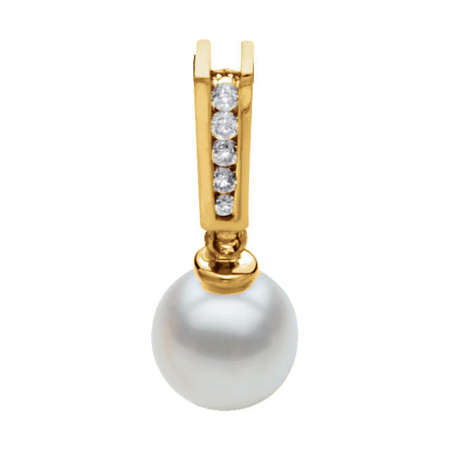 14 Karat Yellow Gold Akoya Cultured Pearl and .07 Carat Diamond Pendant