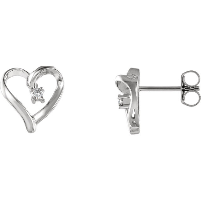 14 Karat White Gold .04 Carat Diamond Heart Earrings