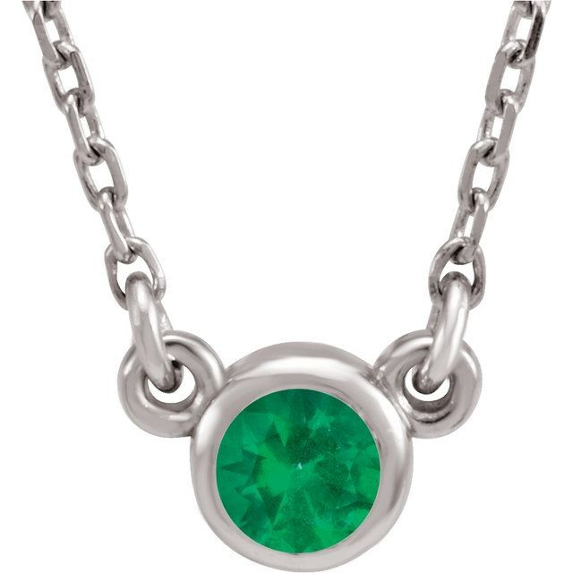 14K White 4 mm Round Lab-Grown Emerald Solitaire 16 inch Necklace