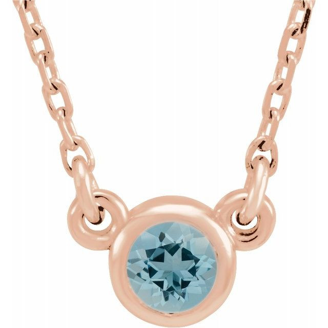 14 Karat Rose Gold 3 mm Round Aquamarine Gem Bezel Set Solitaire 16 inch Necklace