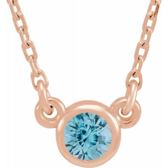 This beautiful 14 Karat Rose Gold 4 mm Round Blue Zircon Bezel-Set Solitaire 16 inch Necklace - Pretty Round Zircon Pendant is a timeless jewelry item made in the highest standards for Gemstone Fashion jewelry