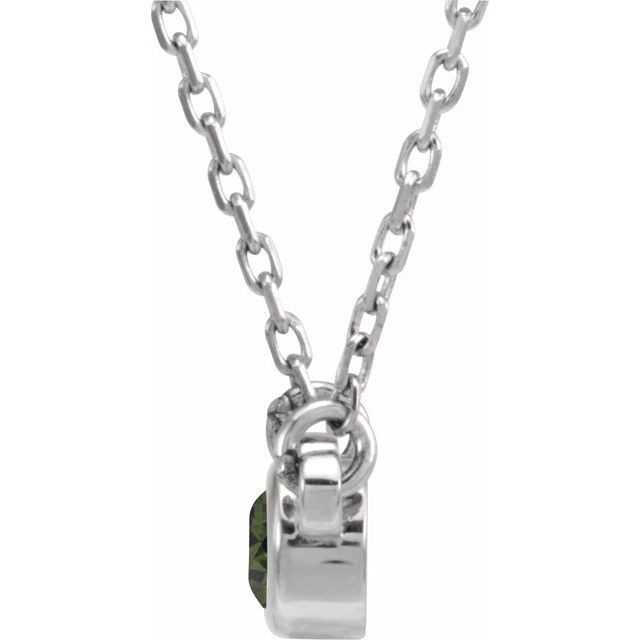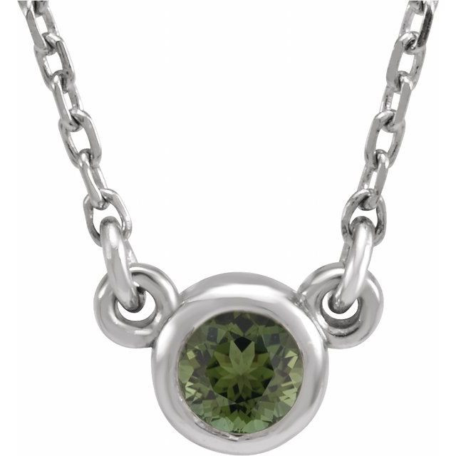 14 Karat White Gold 3 mm Round Green Tourmaline Solitaire 18 inch Necklace
