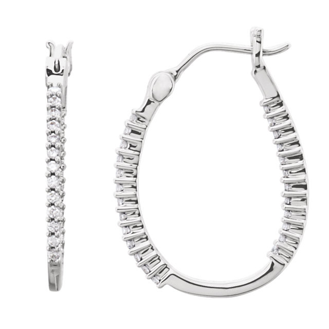 14 Karat White Gold 0.25 Carat Diamond Inside Outside Hoop Earrings