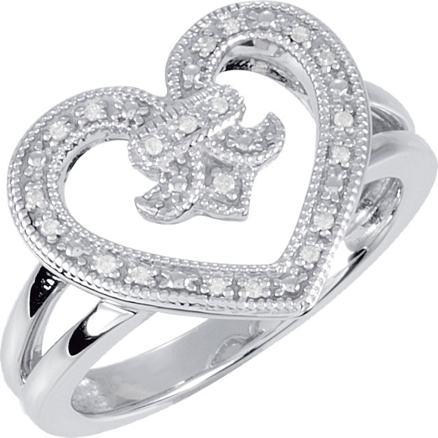Sterling Silver .07 Carat Total Weight Diamond Heart & Fleur-De-Lis Design Ring Size 8 is set with selected fine genuine diamond and set with the highest craftsmanship standards in sterling silver