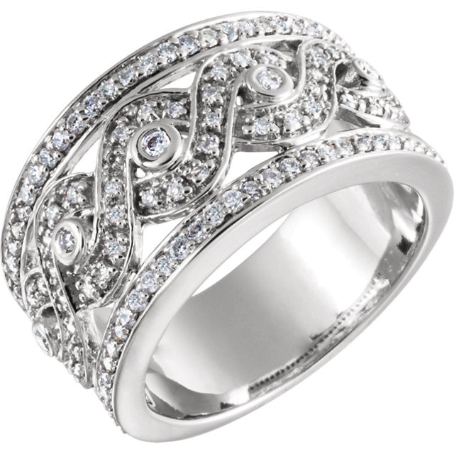 Genuine Diamond set in 14 Karat White Gold 0.60 Carat Round Diamond Openwork Infinity Inspired Band