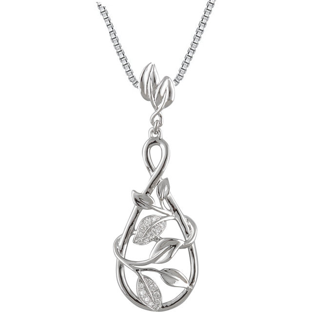 14 Karat White Gold 0.10 Carat Diamond Leaf Design 18 inch Necklace