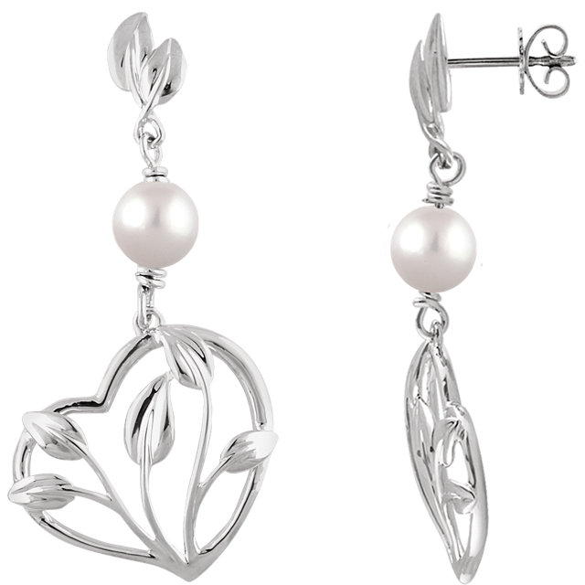 This beautiful 14 Karat Yellow Gold Freshwater Cultured Pearl Leaf & Heart Earrings is set with selected fine genuine pearl and set with the highest craftsmanship standards in 14kt Yellow gold
