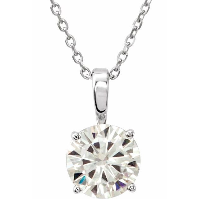 Created Moissanite Necklace in 14 Karat Gold 6 mm Round Forever One Moissanite 18 inch Necklace