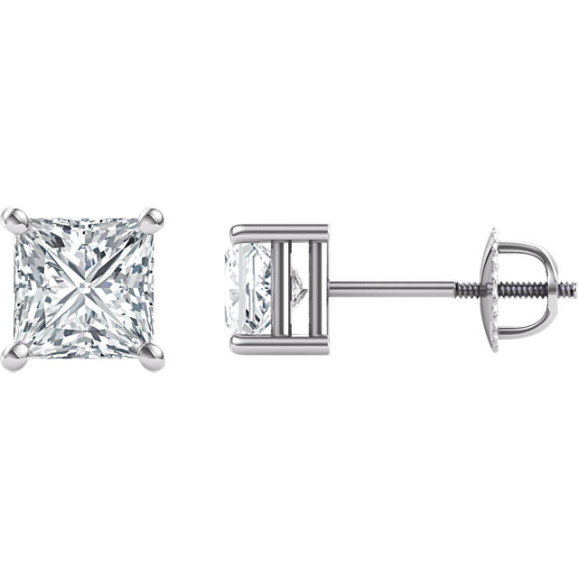This beautiful 14 Karat White Gold 5.5mm Square Genuine Charles Colvard Forever One Moissanite Earrings is set with selected fine charles colvard moissanite and set with the highest craftsmanship standards in 14kt White gold