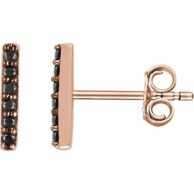 14 Karat Rose Gold 0.10 Carat Black Diamond Bar Earrings