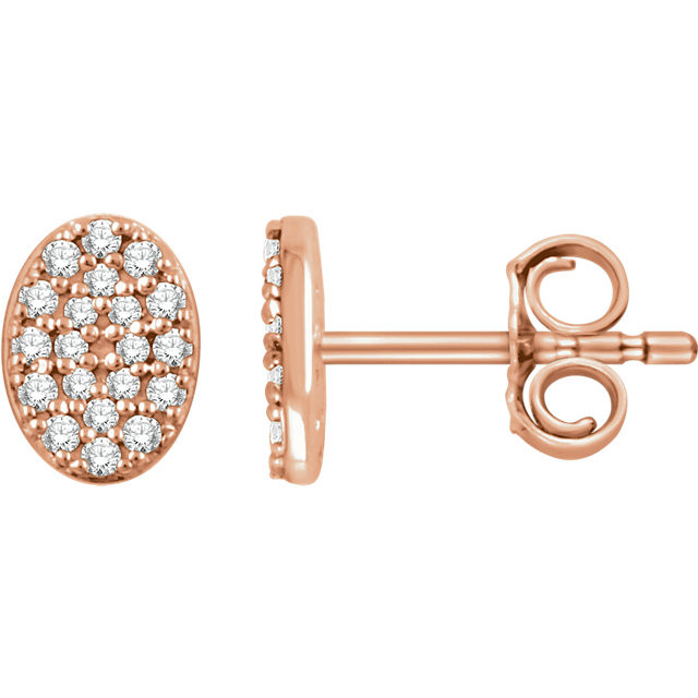 This beautiful 14 Karat Rose Gold 0.17 Carat Total Weight Diamond Oval Cluster Earrings is set with selected fine genuine diamond and set with the highest craftsmanship standards in 14kt Rose gold