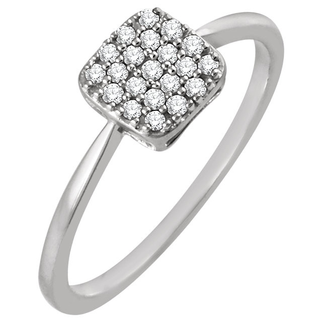 14 Karat White Gold 0.17 Carat Total Weight Diamond Square Cluster Ring is set with selected fine genuine diamond and set with the highest craftsmanship standards in 14kt White gold