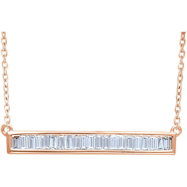 14 Karat Rose Gold 0.50 Carat Diamond Baguette Bar 16 inch Necklace