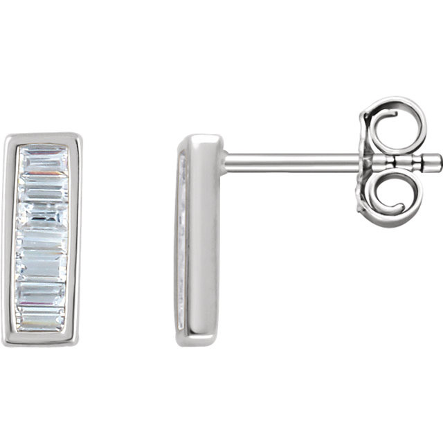 14 Karat White Gold 0.33 Carat Diamond Baguette Bar Earrings