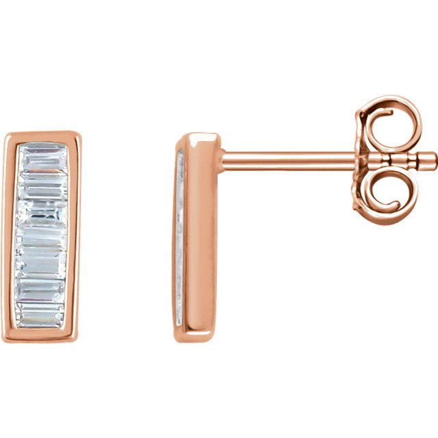 Genuine 14 Karat Rose Gold 0.33 Carat Diamond Baguette Bar Earrings