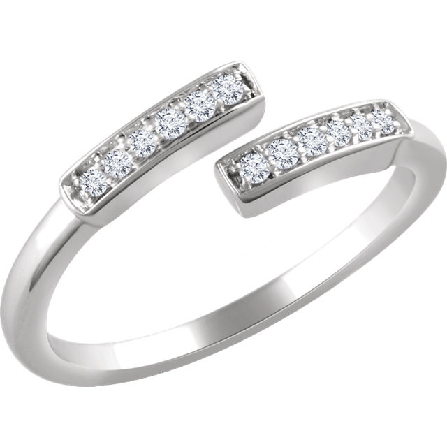 14 Karat White Gold 0.10 Carat Total Weight Diamond Negative Space Bar Ring is set with selected fine genuine diamond and set with the highest craftsmanship standards in 14kt White gold